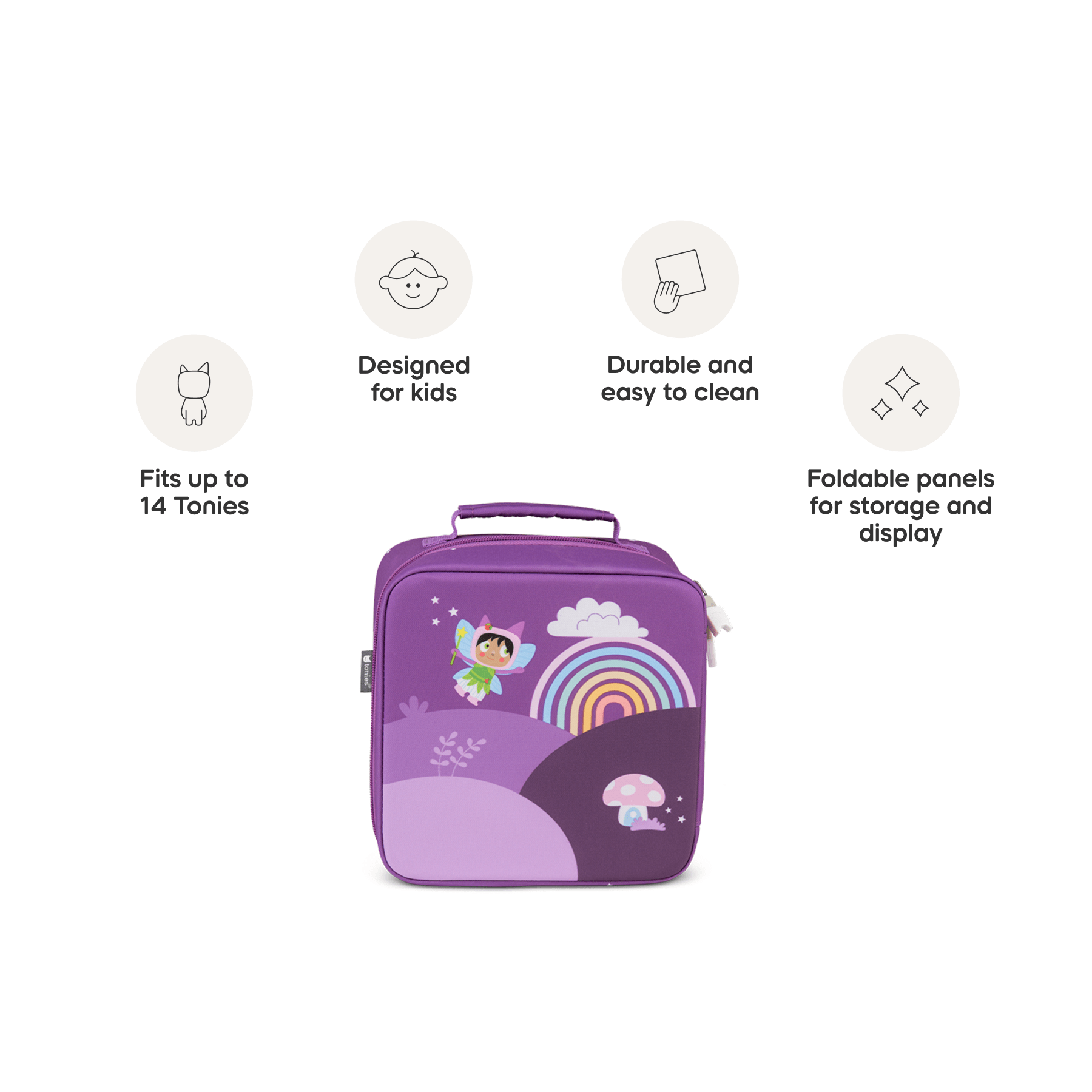 Padded Handle For Easy Carrying By Tiny Hands, And Oversized Tonies Zipper Pulls For Easy Access.